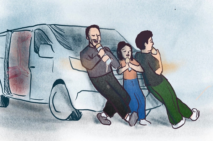 Tromboniste/chanteur + cuivres + cajon + looper = one man balkan brass band live !
